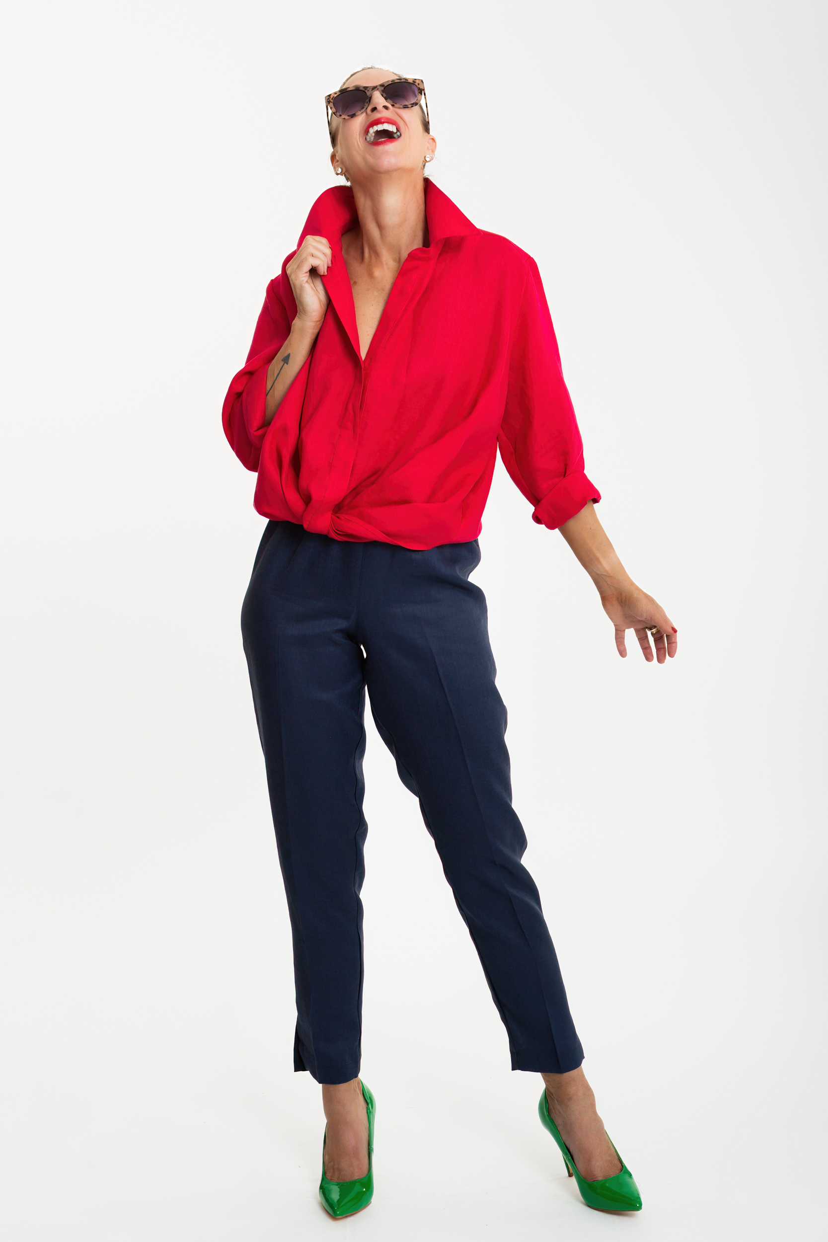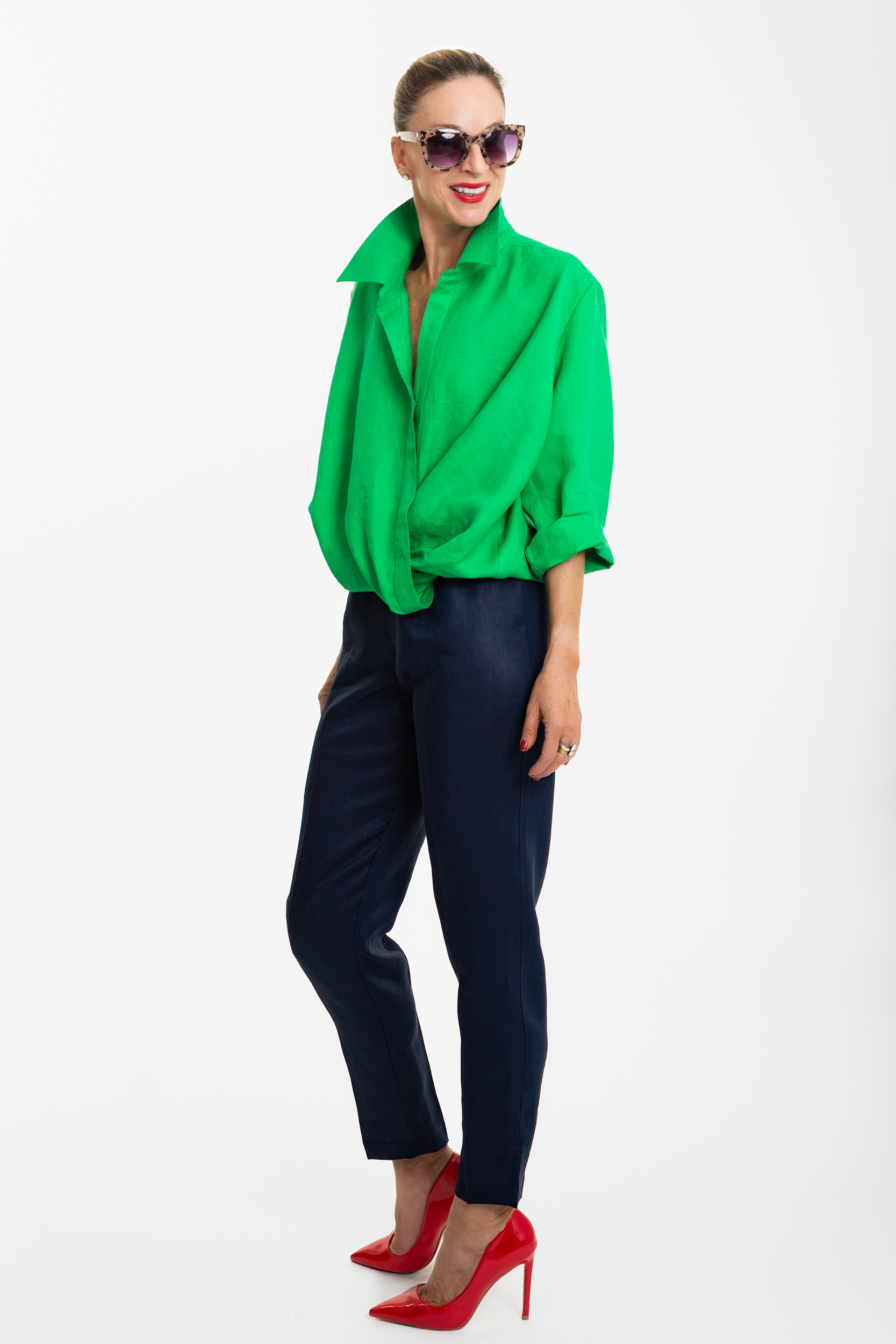 Slim line pant is a wardrobe staple and an ideal workwear addition. Made in pure linen with elastic waist and available in five pure linen colours. A signature of the Daronne Naturelle label, these pants look great with our Porcelain Jacket. Available in Apple, Black, Navy, Sunshine and White